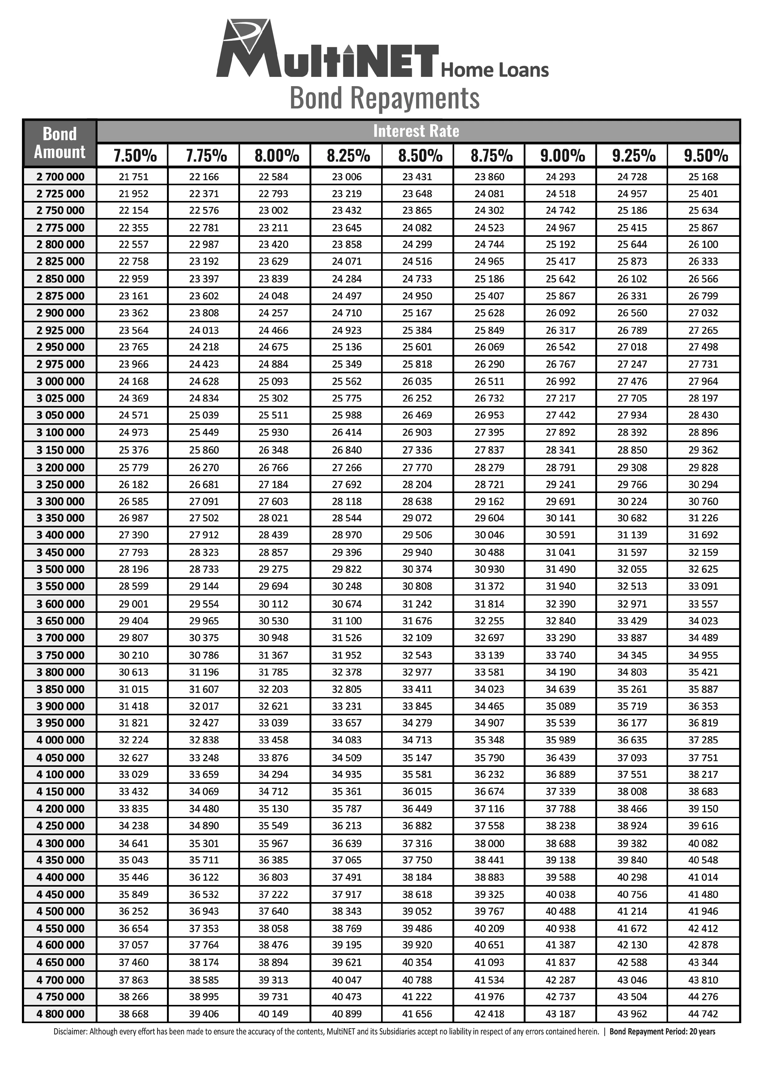 Bond Repayments R2.7mil - R4.8mil
