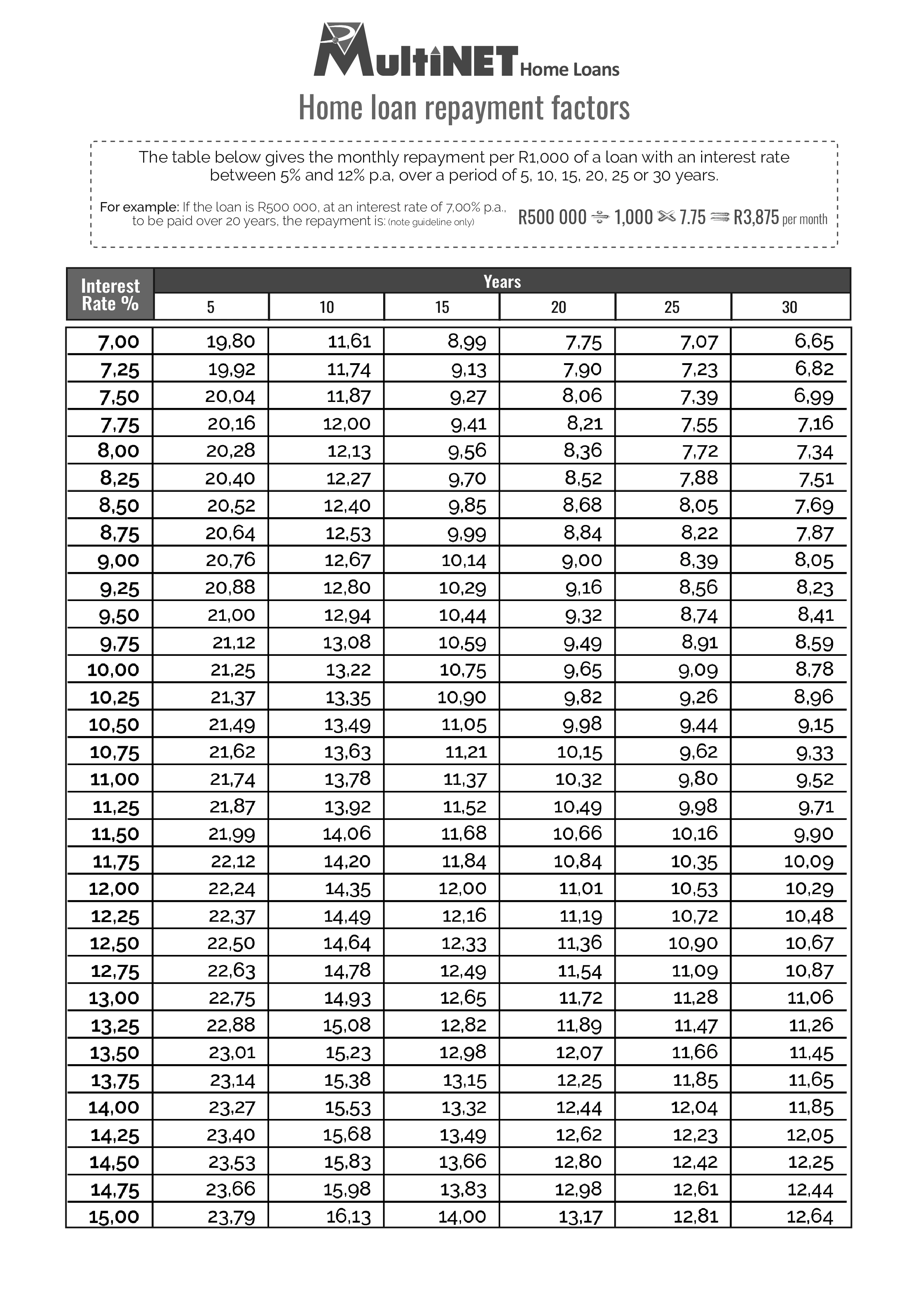 Bond Repayment R500 000 - R2 600 000